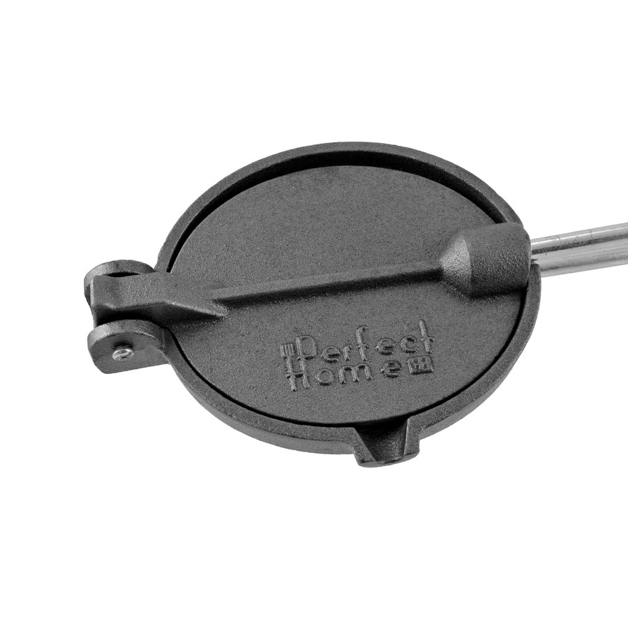 Öntöttvas szalonnasütő prés , Pergect Home” Méretei kb 15 × 14 cm, belseje: 14 × 13 cm, teljes hossza 58 cm